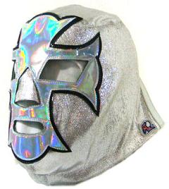This mask has been made with Metallic Stretch Licra and designs with hologram. It can be made with your measurement or a Standard size (standard size means that fits to any person between 70 and 90 kg ).