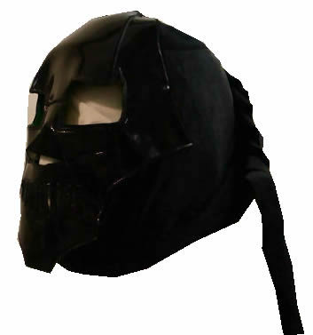This mask has been made Raso Stretch Licra and Synthetic Patent Leather. It can be made with your measurement or a Standard size (standard size means that fits to any person between 70 and 90 kg ).