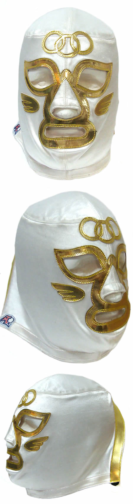 The mask is made of nylon satin fabric and synthetic patent leather and hologram
