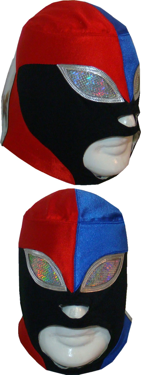 This mask has been made Raso Stretch Licra and Synthetic Leather.