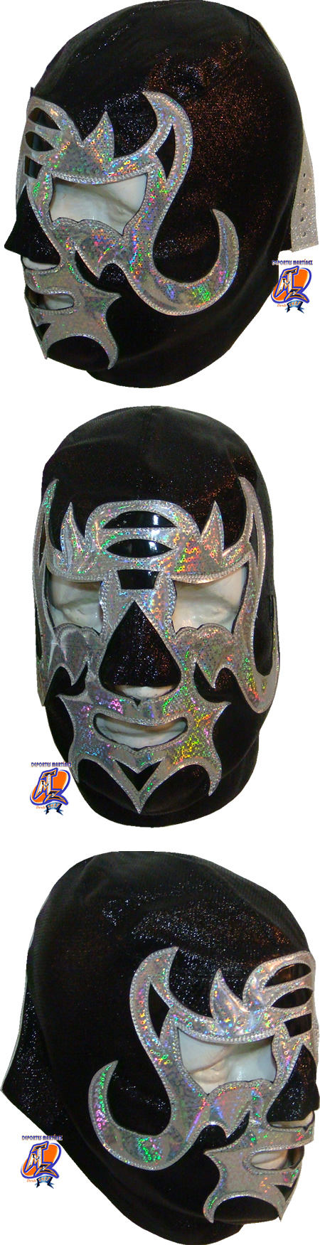 This mask has been made with Metallic Stretch Licra and designs with hologram. It can be made with your measurement or a Standard size (standard size means that fits to any person between 70 and 90 kg ).