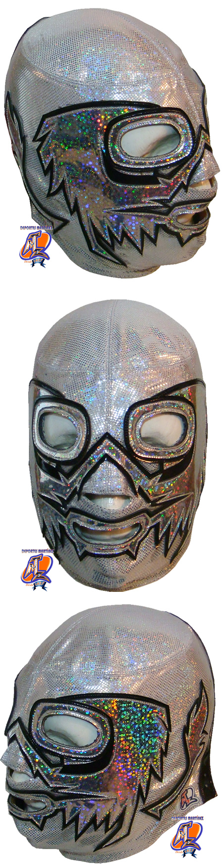 This mask has been made high shine Stretch Licra and designs with hologram. It can be made with your measurement or a Standard size (standard size means that fits to any person between 70 and 90 kg ).