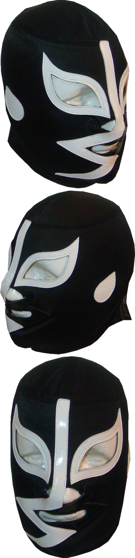 This mask has been made Raso Stretch Licra and Synthetic Patent Leather. It can be made with your measurement or a Standard size (standard size means that fits to any person between 70 and 90 kg ).