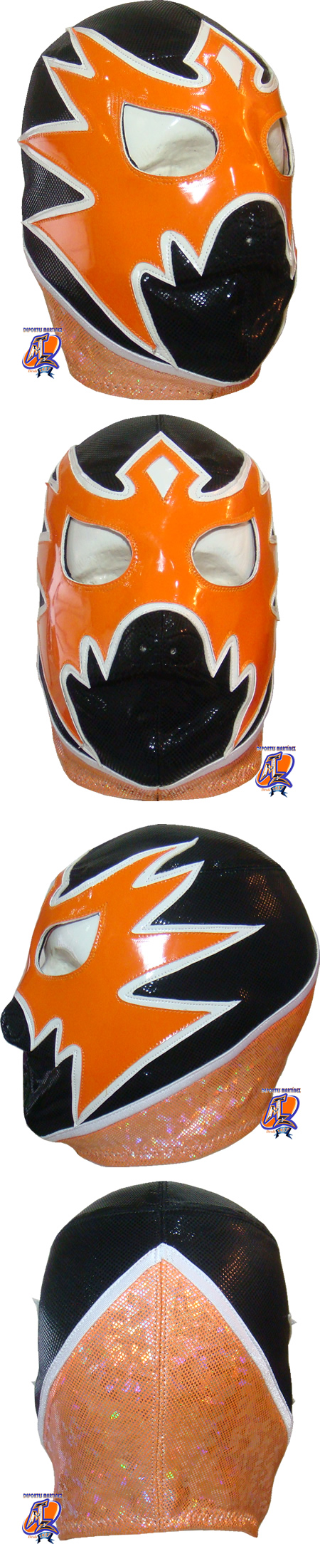 This mask has been made high shine Stretch Licra and Synthetic Patent Leather and designs with hologram. It can be made with your measurement or a Standard size (standard size means that fits to any person between 70 and 90 kg ).