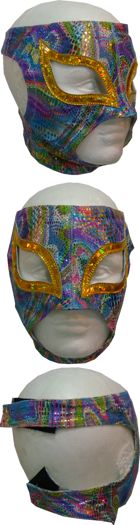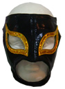 The mask is made of high shine fabric and synthetic patent leather