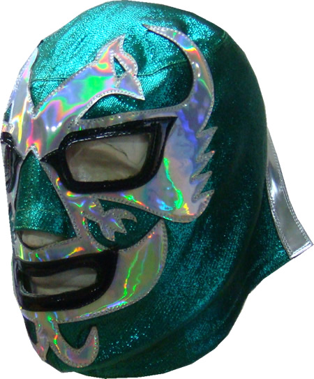 The mask is made of metallic fabric and synthetic hologram