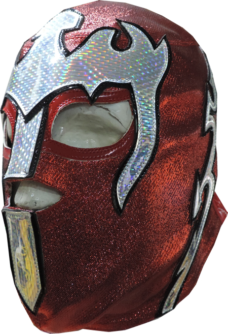 The mask is made of metallic fabric and synthetic hologram