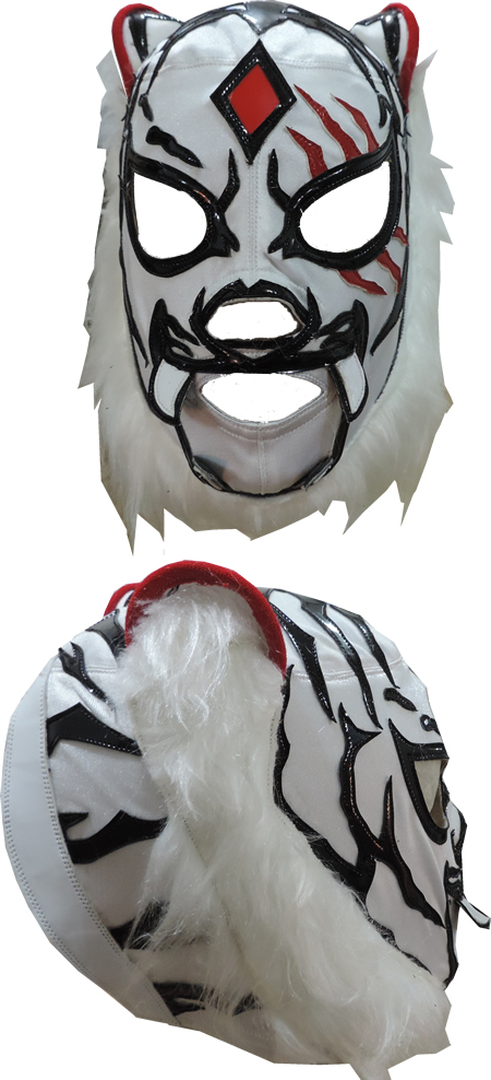 This mask has been made Raso Stretch Licra and Synthetic Patent Leather