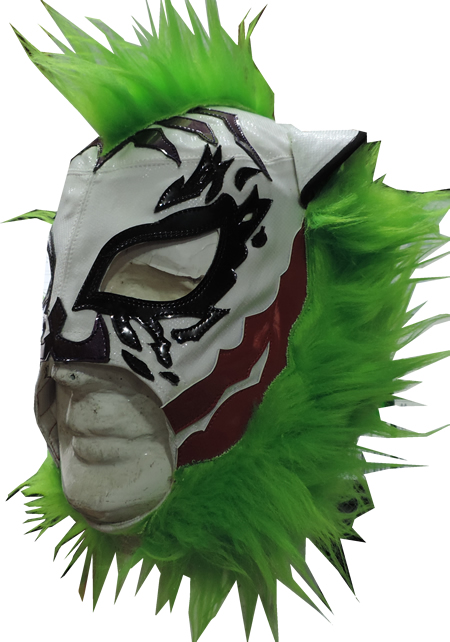 This mask has been made Raso Stretch Licra and Synthetic Patent Leather