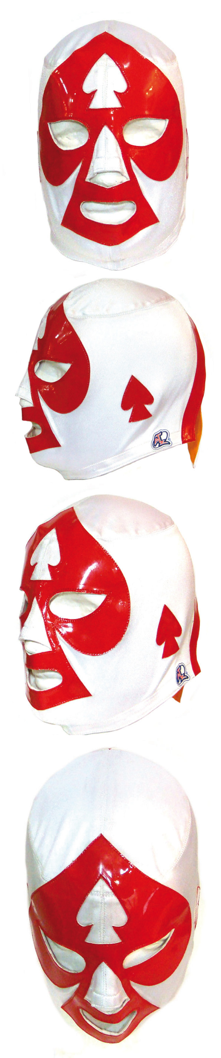 The mask is made of nylon satin fabric and synthetic patent leather and hologram