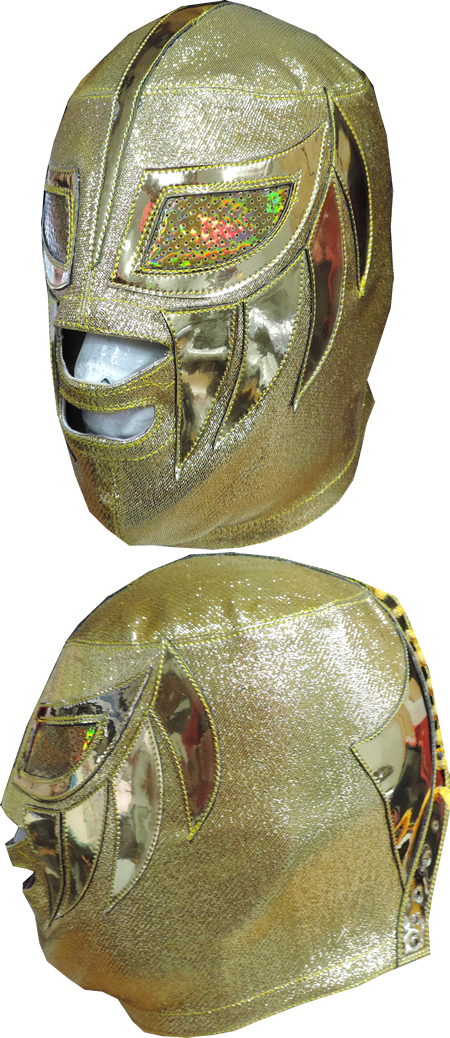 The mask is made of nylon metallic fabric and synthetic patent leather