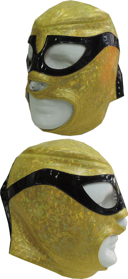 The mask is made of high shine fabric and natural synthetic leather