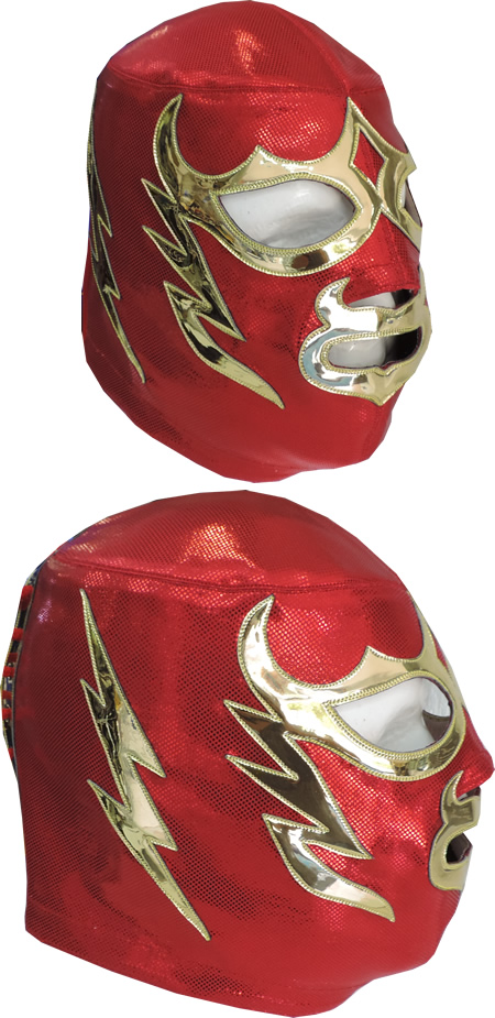 The mask is made of high shine fabric and syntehic leather