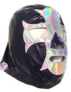 This mask has been made Wet Stretch Licra and Synthetic Patent Leather and designs with hologram. It can be made with your measurement or a Standard size (standard size means that fits to any person between 70 and 90 kg ).