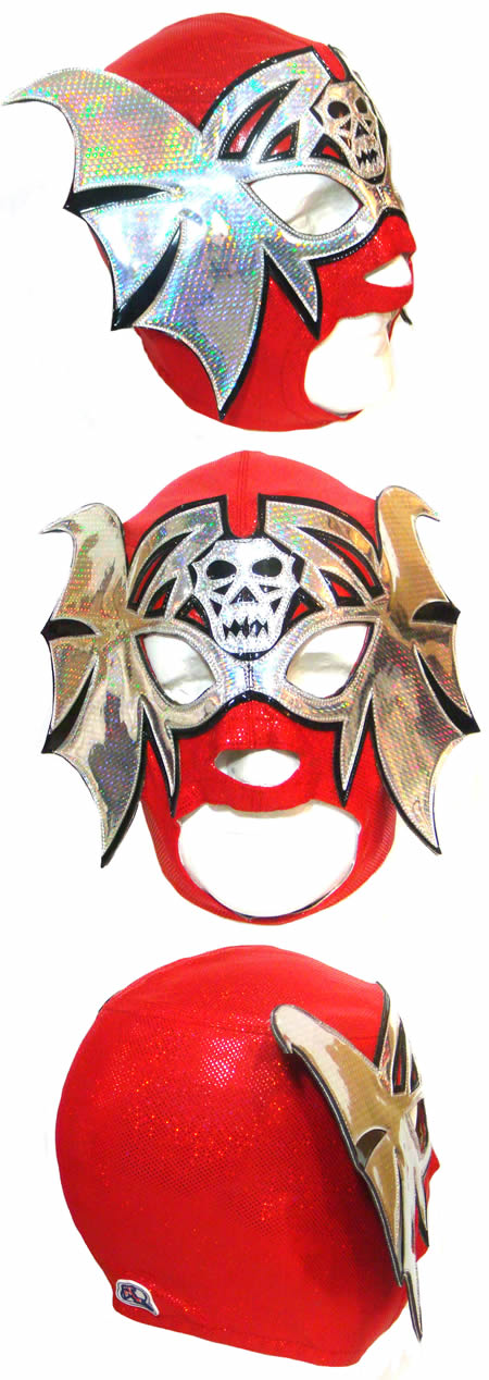 Este producto lo hacemos sobre pedido La máscara está fabricada con tela raso, holograma y charol sintético Puede ser confeccionada a su medida con un costo adicional (4754) o bien una medida estándar (la medida estándar es una talla grande, que le queda a cualquier persona que pese entre 60 y 90 kg). Adhiere a tu carrito de compras esta opción fabricar la máscara a tu medida clave 4754 http://www.mtzwear.com/esp/art_detalle.php?id=7076 La información acerca de las mediciones, la puede encontrar en nuestro sitio web en la parte que se marca en rojo (Cómo tomar mis medidas) una medida importante que requerimos es alrededor del cuello y cabeza. http://www.mtzwear.com/esp/servicios.php Requerimos de dÃas laborales para procesar una orden de ese catálogo sobre pedido ya que son artÃculos hechos a mano los cuales se consideran productos artesanales. Ejemplo: 30 dÃas hábiles (o dÃas laborables) quiere decir que solo deberá contar dÃas de lunes a viernes y excluir fines de semana y dÃas festivos en Mexico aproximadamente de 4 a 5 semanas. MAS EL TIEMPO DE ENVIO. El tiempo de fabricación lo puede consultar en la sección donde que dice Tiempos de Entrega & EVENTOS MTZ http://www.mtzwear.com/esp/eventos.php También contamos con servicio Express para empresas o clientes como cine, teatro, T.V. O agencias con mayor urgencia en los tiempos de entrega. El costo por unidad de este servicio es el doble; Contáctanos al correo info@mtzwear.com Si usted desea esta mascara en alguna otra combinación de color o talla, solo tiene que adherir los colores o las tallas que desea cambiar en el cuadro al calce que dice observaciones o instrucciones adicionales una vez que da clic en el botón comprar. Todas las máscaras profesionales vienen con un estuche de plástico para mejorar su conservación. Tenga en cuenta, letras y diseños pueden agregarse a estas piezas solo debe de enviarnos un correo electrónico con el dibujo, imagen o diseño, clave o cualquier detalle que prefiere a (info@mtzwear.com) para obtener un presupuesto especial. O bien puede comprar lo opción clave 4755 http://www.mtzwear.com/esp/art_detalle.php?id=7078 El costo de envió lo puede calcular dando clic en Comprar y eligiendo el paÃs donde radica. Opciones de pago: 1. Depósito Bancario 2. Por Western Unión o Money gram, 3. Por tarjeta de crédito (entrar en Dinero Mail si la compra es de México o PayPal si es del extranjero o Mexico), 4. Transferencia de dinero por Banco, 5. Por PayPal a: info@mtzwear.com Si tienes alguna pregunta, no dude en ponerse en contacto con nosotros por correo electrónico (info@mtzwear.com). Nuestro equipo de venta de Deportes Martinez se complacerá en ayudarle. No aceptaremos devoluciones de estos productos. En México no tenemos ese sistema para reembolso o devolución de dinero, asegúrese de agregar las medidas correctas o descripciones; Las imágenes presentadas son a modo ilustrativo; pueden variar con el producto real dependerá de la materia prima disponible ya que muchos materiales con el tiempo de descontinúan, en tal caso buscamos la mejor opción disponible y la más parecida al producto. Los únicos productos que enviamos inmediatamente son los que aparecen en nuestro catálogo en Existencia. Gracias por su preferencia.