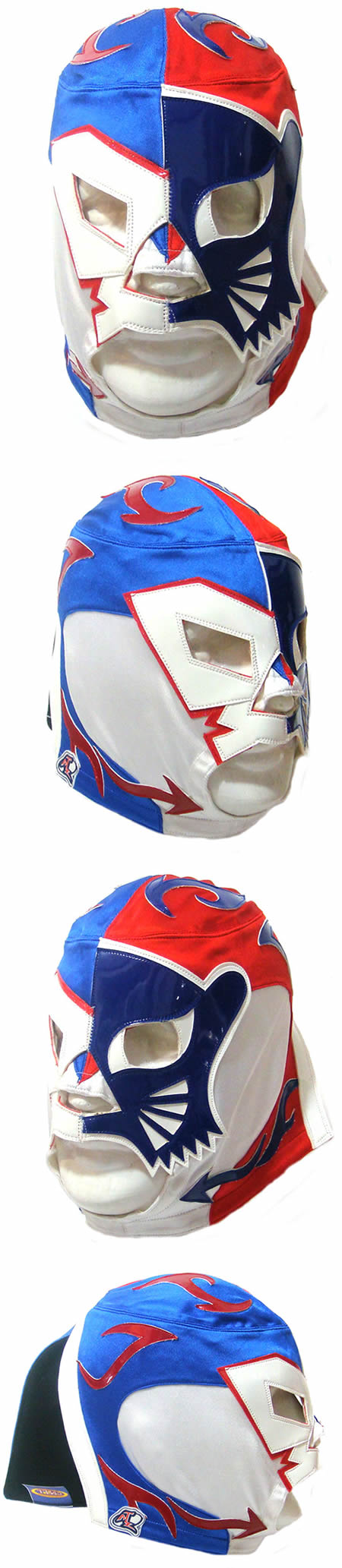 La máscara está fabricada con tela raso, holograma y charol sintético