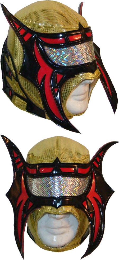 La máscara está fabricada con tela alto brillo y charol sintético