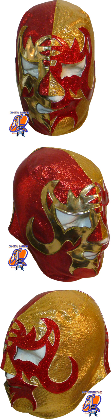 La mascara esta fabricada con tela metálica y piel sintético y litter. Puede ser confeccionada a su medida o bien una medida estándar (la medida estándar es una talla grande, que le queda a cualquier persona que pese entre 60 y 90 kg). El tiempo de fabricación lo puede consultar en la sección donde que dice EVENTOS MTZ Si usted desea esta mascara en alguna otra combinación de color o talla, solo tiene que adherir los colores o las tallas que sedea cambiar en el cuadro al calce que dice observaciones o instrucciones adicionales. Las bases para tomar las medidas las puede consultar en la sección COMO TOMAR MIS MEDIDAS. Todas las mascaras vienen con un estuche de plástico para mejorar su conservación. El costo de envió lo puede calcular dando click en Comprar y eligiendo el paÃs donde radica.
