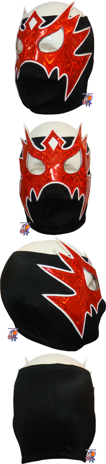 La mascara esta fabricada con tela razo , charol sintético y adornos de holograma. Puede ser confeccionada a su medida o bien una medida estándar (la medida estándar es una talla grande, que le queda a cualquier persona que pese entre 60 y 90 kg). El tiempo de fabricación lo puede consultar en la sección donde dice EVENTOS MTZ Si usted desea esta mascara en alguna otra combinación de color o talla, solo tiene que adherir los colores o las tallas que desea cambiar en el cuadro al calce que dice observaciones o instrucciones adicionales. Las bases para tomar las medidas las puede consultar en la sección COMO TOMAR MIS MEDIDAS. Todas las mascaras vienen con un estuche de plástico para mejorar su conservación. El costo de envió lo puede calcular dando click en Comprar y eligiendo el paÃs donde radica.