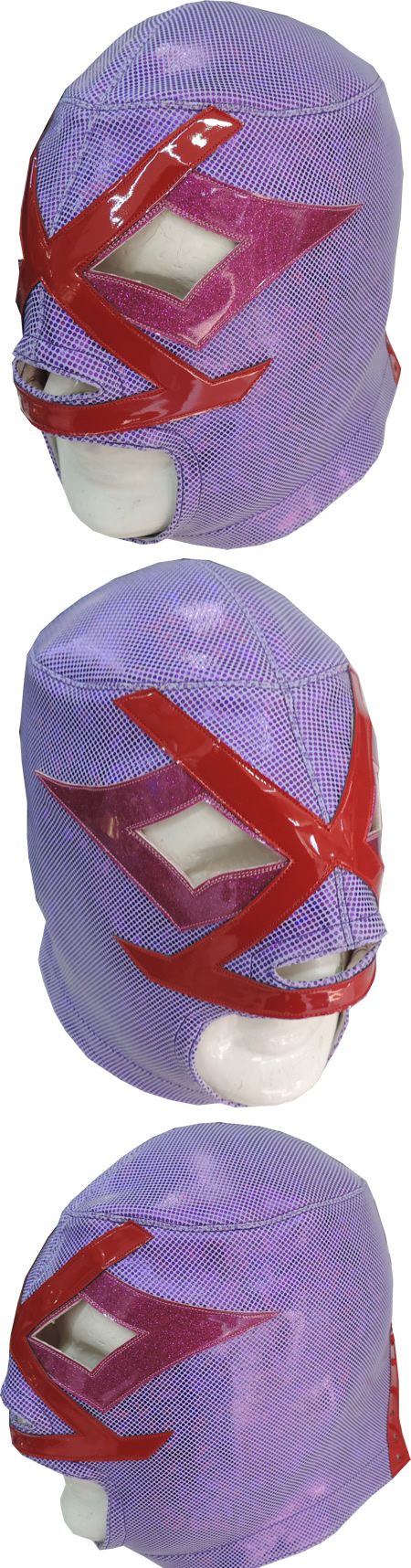 La máscara está fabricada con tela de alto brillo y piel de charol sintetico