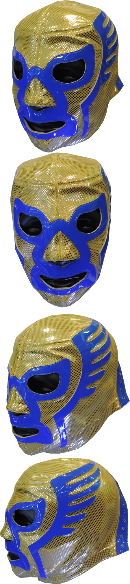 La máscara está fabricada con tela de alto brillo y piel de charol sintetico