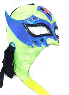 La mascara esta fabricada con tela de licra alto brillo y adornos de holograma.