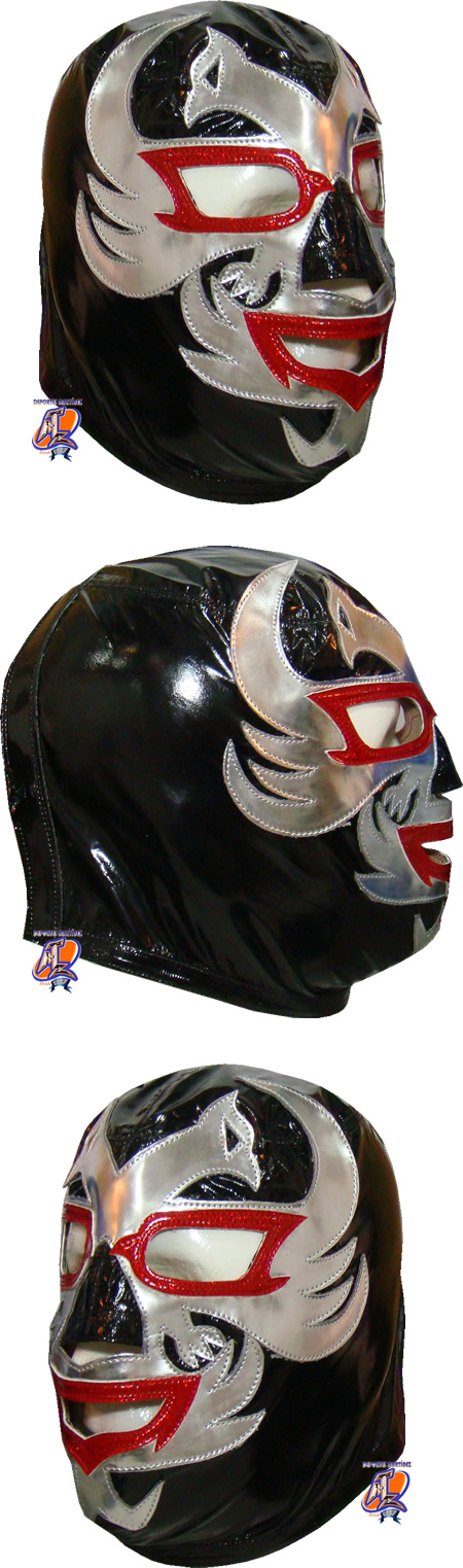 La mascara esta fabricada con tela de licra piel, con charol sintetico Puede ser confeccionada a su medida o bien una medida estándar (la medida estándar es una talla grande, que le queda a cualquier persona que pese entre 60 y 90 kg). El tiempo de fabricación lo puede consultar en la sección donde que dice EVENTOS MTZ Si usted desea esta mascara en alguna otra combinación de color o talla, solo tiene que adherir los colores o las tallas que sedea cambiar en el cuadro al calce que dice observaciones o instrucciones adicionales. Las bases para tomar las medidas las puede consultar en la sección COMO TOMAR MIS MEDIDAS. Todas las mascaras vienen con un estuche de plástico para mejorar su conservación. El costo de envió lo puede calcular dando click en Comprar y eligiendo el paÃs donde radica.