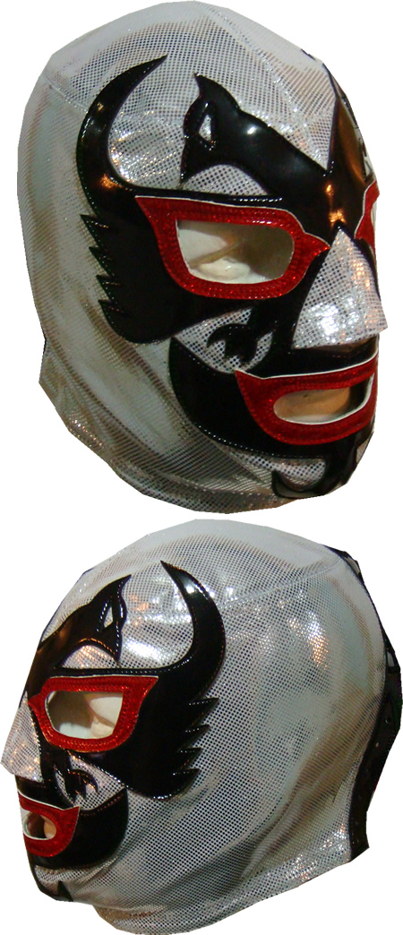La mascara esta fabricada con tela de alto brillo y charol sintético Puede ser confeccionada a su medida o bien una medida estándar (la medida estándar es una talla grande, que le queda a cualquier persona que pese entre 60 y 90 kg). El tiempo de fabricación lo puede consultar en la sección donde que dice EVENTOS MTZ Si usted desea esta mascara en alguna otra combinación de color o talla, solo tiene que adherir los colores o las tallas que sedea cambiar en el cuadro al calce que dice observaciones o instrucciones adicionales. Las bases para tomar las medidas las puede consultar en la sección COMO TOMAR MIS MEDIDAS. Todas las mascaras vienen con un estuche de plástico para mejorar su conservación. El costo de envió lo puede calcular dando click en Comprar y eligiendo el paÃs donde radica.
